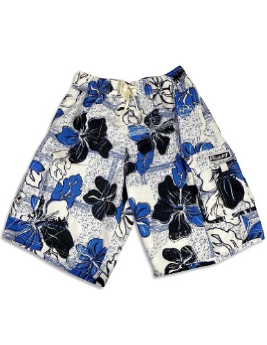 Private Label - Mens Floral Swimsuit, White, Blue, Floral Print, Full Elastic Waistband With Decorative Tie Drawstring, Side Seam Pockets, Cargo Pockets, Mesh Liner, 100% Polyester, #25466You will not be disappointed with